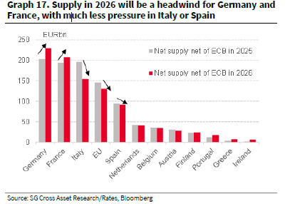 Anno da dimenticare invece per i titoli di Stato francesi e britannici. Gli OAT di Parigi hanno scontato l’incertezza e l’instabilità politica, con 4 governi che si sono avvicendati negli ultimi mesi, oltre a un a traiettoria del debito pubblico che viene definita da molti osservatori insostenibile. Il rapporto debito/PIL a fine 2026 dovrebbe superare il 120%, mentre il deficit di bilancio pubblico che resta stabilmente sopra il 5% del PIL. Di conseguenza i costi del debito francese sono tornati ai massimi dal 2011, mentre lo spread con il Bund è stato volatile e si è attestato per la prima volta livelli superiori a quelli dei titoli italiani sul decennale. E da ultimo è arrivato il declassamento da parte delle agenzie di rating.