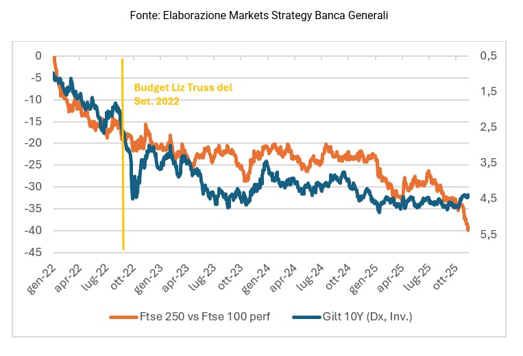 Negli ultimi anni, la politica fiscale britannica ha fatto vivere momenti di forte tensione ai mercati, in particolare nel 2022, quando il cosiddetto ‘mini-budget’ dell’allora premier Liz Truss ha generato una violenta ondata di volatilità sui titoli di Stato del Regno Unito. Da allora, “l’attenzione degli investitori internazionali sulla sostenibilità del debito pubblico britannico è cresciuta, rendendo cruciale per il governo ristabilire la fiducia dei mercati e garantire la solidità dei conti nel medio-lungo termine”, spiega Generoso Perrotta, Head of Financial Advisory di Banca Generali.
