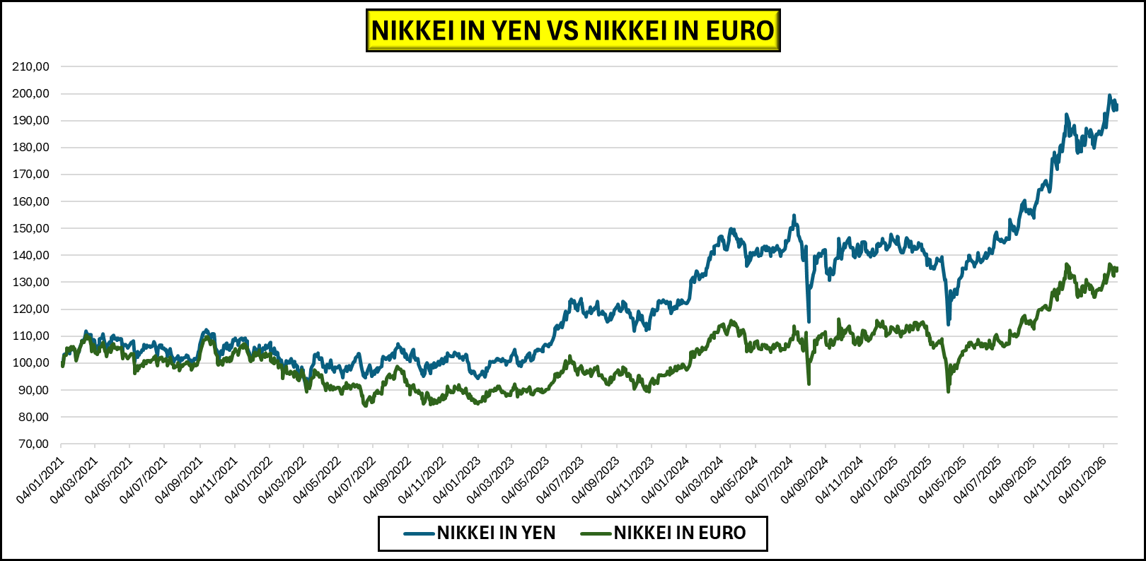 Uno scenario favorevole su cui si è innestato in autunno il cosiddetto ‘Takaichi Trade’. La prima donna alla guida del Giappone ha rivendicando l’eredità dell’Abenomics, la politica super espansiva del suo mentore, il defunto premier Shinzo Abe, promettendo massicci stimoli fiscali per consolidare la crescita economica del Paese.
